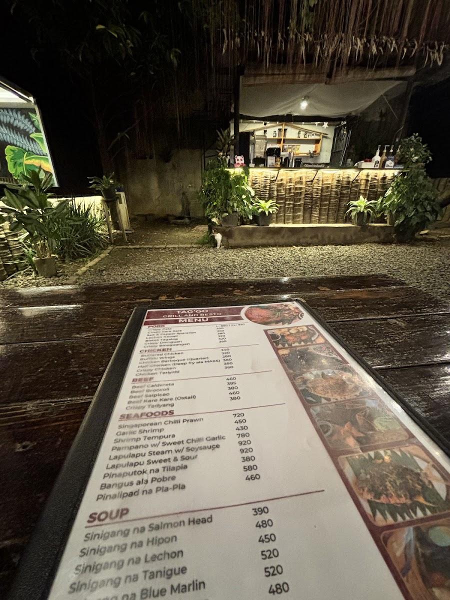 Welcome to TAGGO Grill & Resto, a culinary gem nestled in the heart of Batangas City. This restaurant invites you to indulge in a menu brimming with local flavors and comforting dishes. Highlights include the vibrant Kinilaw, which shines with fresh tuna, and the savory Sizzling Sisig, both universally loved by patrons. Savor the rich aroma of the Sinigang Salmon Head, delightfully tangy and laden with fresh vegetables. Guests rave about their generous servings of Tokwa't Baboy and the flavorful Grilled Tuna Panga, adding a touch of charred perfection. The atmosphere is serene, complemented by caged birds and lush fruit trees, creating a perfect backdrop for a relaxed dining experience. With attentive staff and a welcoming vibe, TAGGO is not just a meal; it's a heartfelt culinary experience waiting to be discovered. Come, savor the essence of Filipino cuisine!